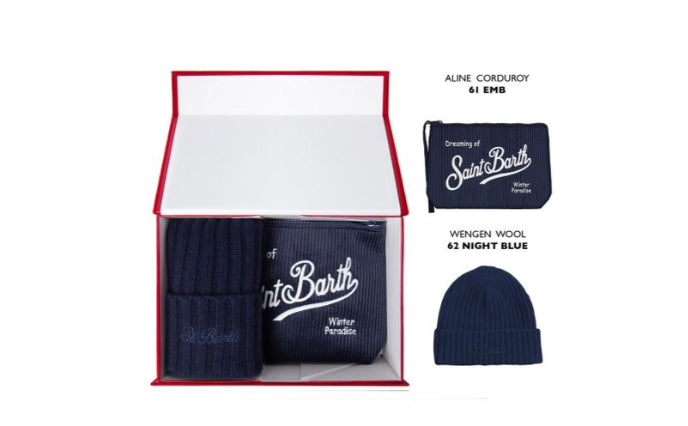 MC2 SAINT BARTH CHRISTMAS BOX CAPPELLO E POCHETTE BLU A RIGHE