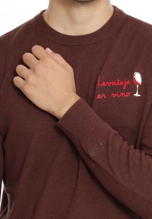 MC2 SAINT BARTH MAGLIONE A GIROCOLLO HERON LIGHT CON RICAMO LEVATEIE ER VINO MARRONE