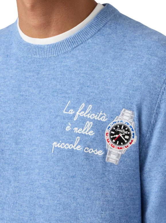 MC2 SAINT BARTH MAGLIONE HERON LIGHT CON RICAMO LA FELICITÀ È NELLE PICCOLE COSE AZZURRO