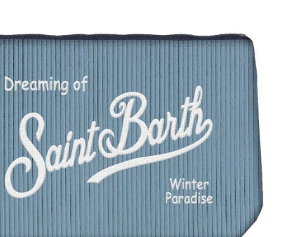 Pochette Mc2 Saint Barth Corduroy, modello effetto a righe con logo in contrasto al centro, polsiera fissa, colore celeste