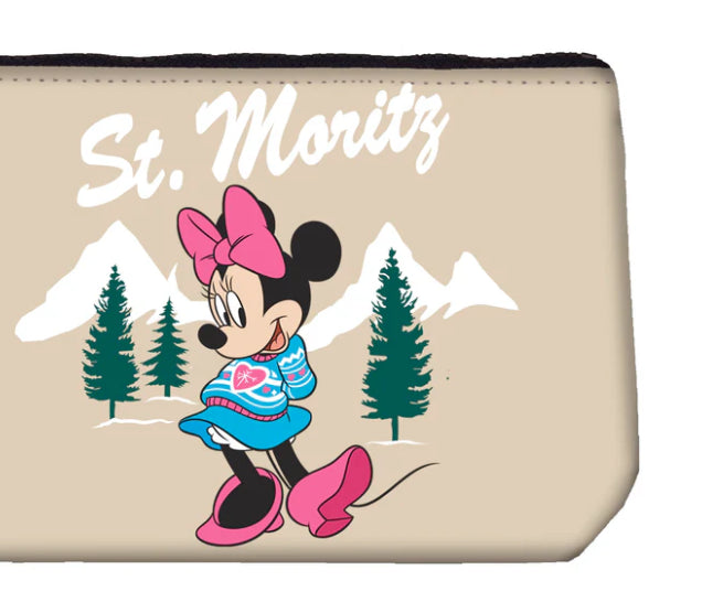 Pochette donna con interno in tessuto scuba. Manico singolo e zip. Logo Minnie St. Moritz Dimensioni: 20 x 14,5 x 7 cm. 70% SBR, 30% Poliestere