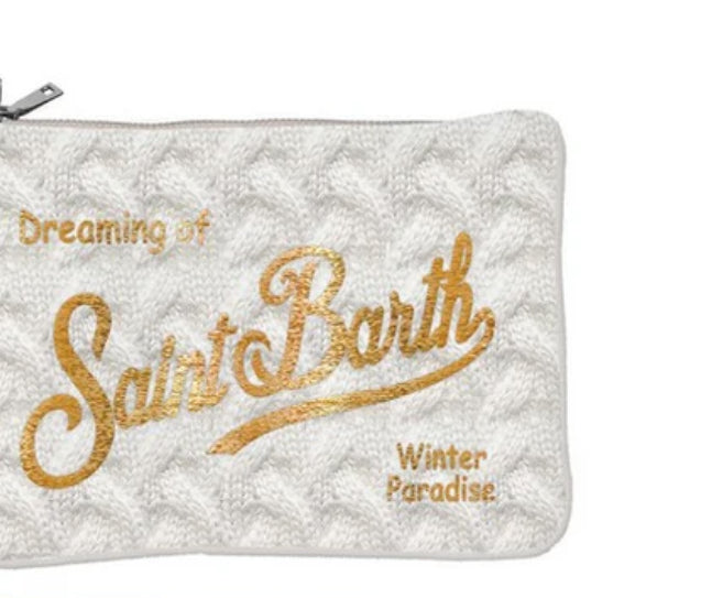 Pochette Parisienne Wool realizzata in maglia di misto lana lavorata a trecce. Chiusura con cerniera, maniglia e tracolla rimovibili, logo Saint Barth ricamato in colore oro.