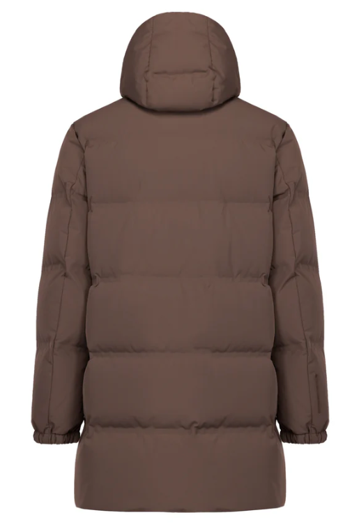 Piumino lungo trapuntato in nylon stretch two layers con membrana, interno con piumino 90/10.