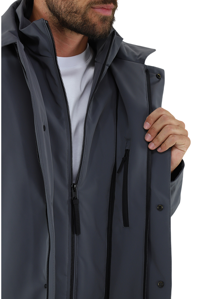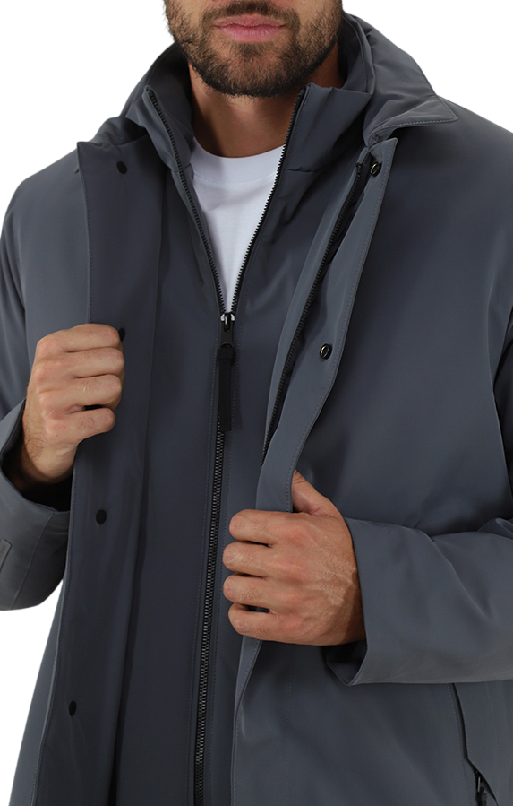 Trench in lana tecnica three layers con membrana con collo camicia.