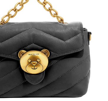 Borsa a tracolla puffy versione grande in morbida ecopelle con trapuntatura. Chiusura magnetica con orsetto e manico in catena effetto invecchiato. Tracolla removibile e fodera interna in cotone con tasca. L 29 H 19 P 11