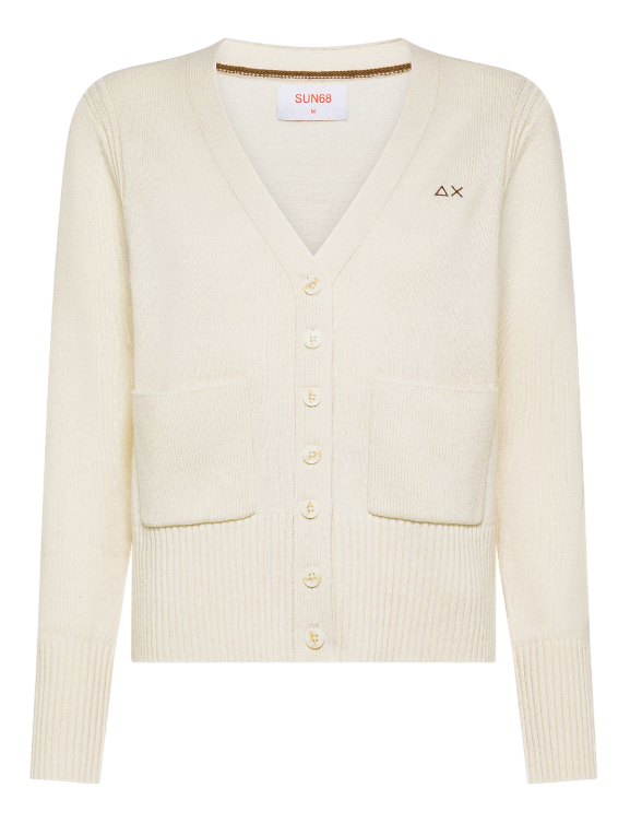 SUN68 CARDIGAN IN FILATO DI LANA E CASHMERE BIANCO PANNA