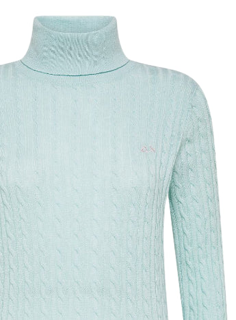 SUN68 MAGLIONE DOLCEVITA IN LANA E CASHMERE A TRECCE ACQUA