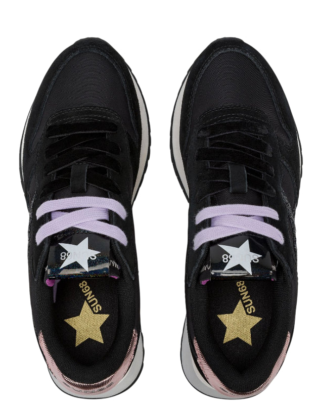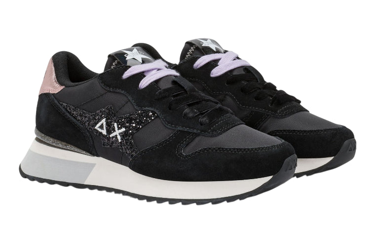 SUN68 SNEAKERS DONNA STARGIRL GLITTER IN NYLON E SUEDE NERO
