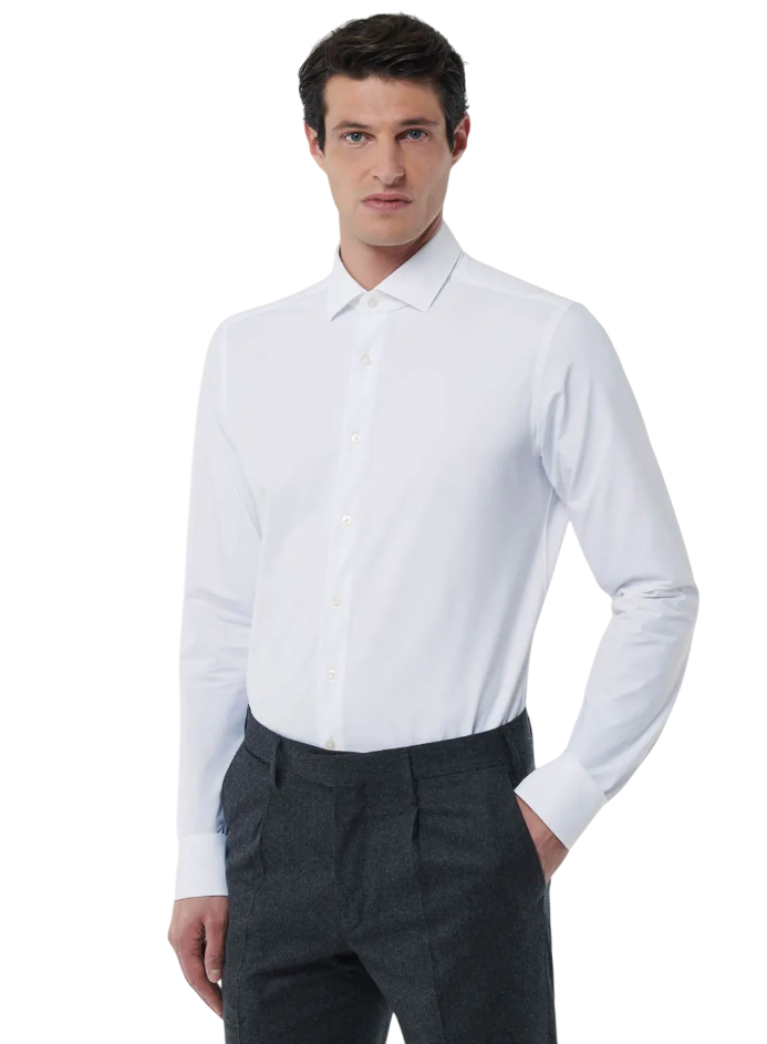 Per uno stile di vita dinamico e sempre in movimento, nasce un camicia creata con esclusiva tecnologia giapponese. Composta da un filato di poliammide ed elastane, Active-shirt è un capo altamente traspirante, 3D stretch che si asciuga rapidamente, rimanendo sempre confortevole in qualsiasi situazione di movimento. Leleganza di una camicia formale e sempre perfetta senza rinunciare alla massima praticità.