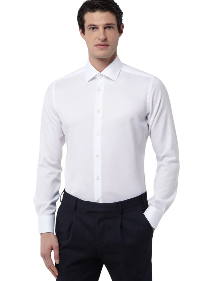 I tessuti Travel-Shirt usano la temperatura del corpo per rimanere inalterati e senza pieghe durante l'intera giornata. Di elevata qualità questo tessuto compatto e liscio in doppio ritorto è ideale per l'ufficio e quelle situazioni in cui risultare impeccabili è fondamentale. I colori sono brillanti e nella sua leggerezza rimane un tessuto con poca trasparenza e di facilissimo stiro, grazie al trattamento Travel-Shirt.