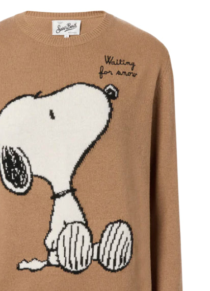 MC2 SAINT BARTH MAGLIONE DONNA NEW QUEEN IN MISTO CASHMERE CAMMELLO CON JACQUARD SNOOPY E RICAMO