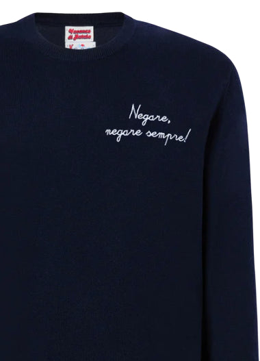 MC2 SAINT BARTH MAGLIONE HERON LIGHT CON RICAMO NEGARE, NEGARE SEMPRE! BLU