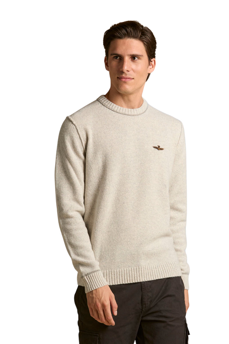 AERONAUTICA MILITARE MAGLIA GIROCOLLO IN LANA TINTO FILO BIANCO GHIACCIO