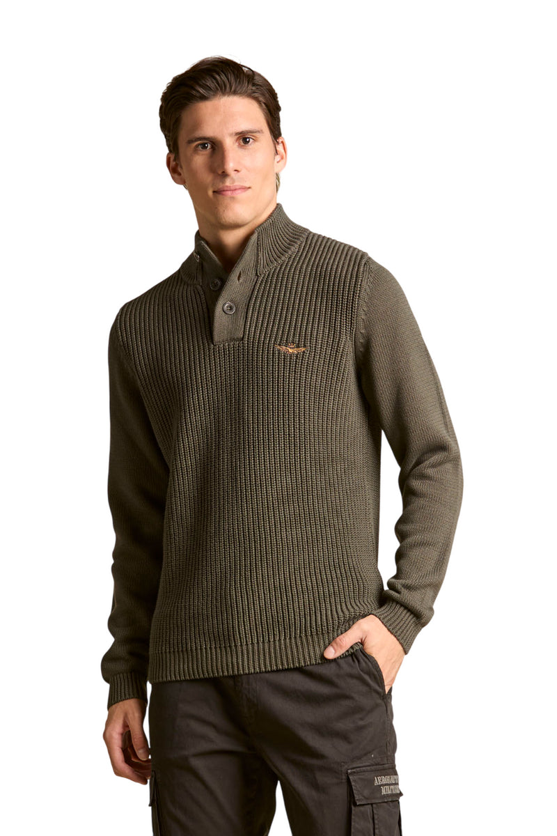 AERONAUTICA MILITARE MAGLIA COLLO ALTO CON BOTTONI IN COTONE BELUGA GREY