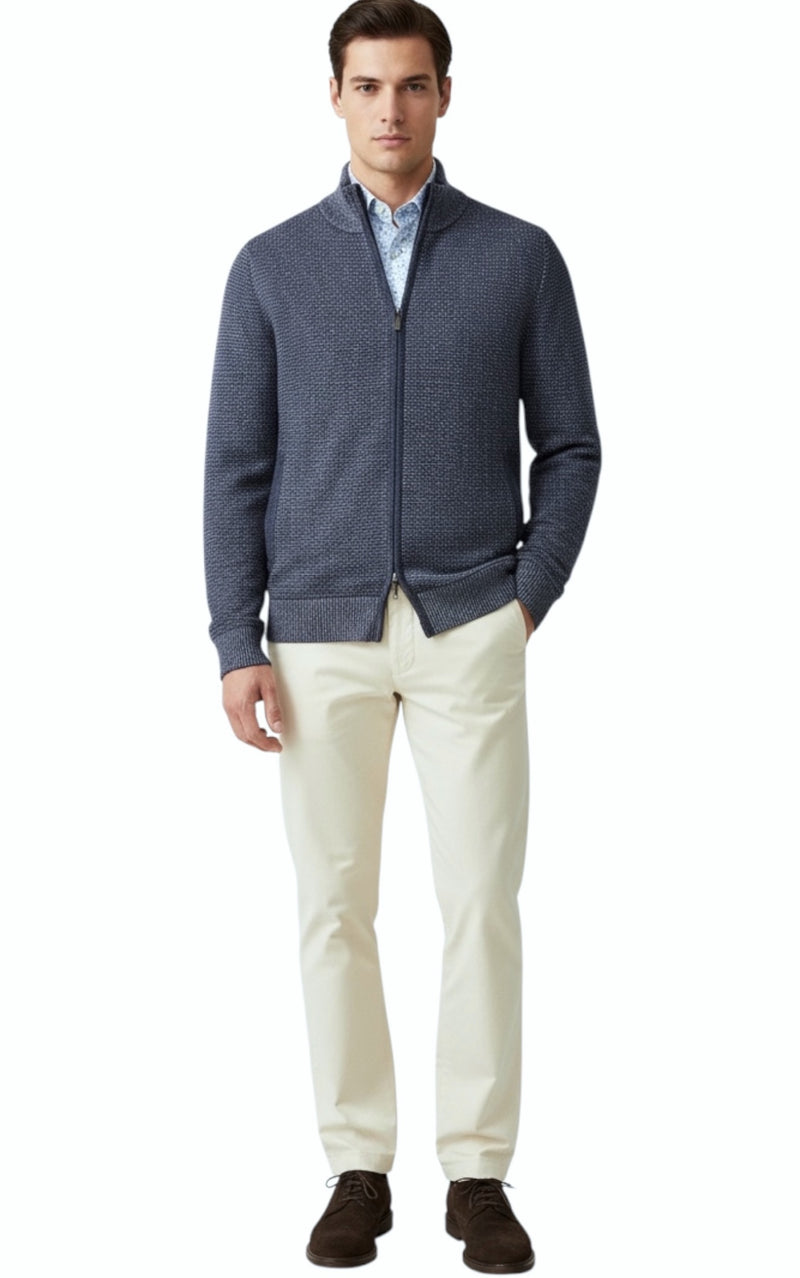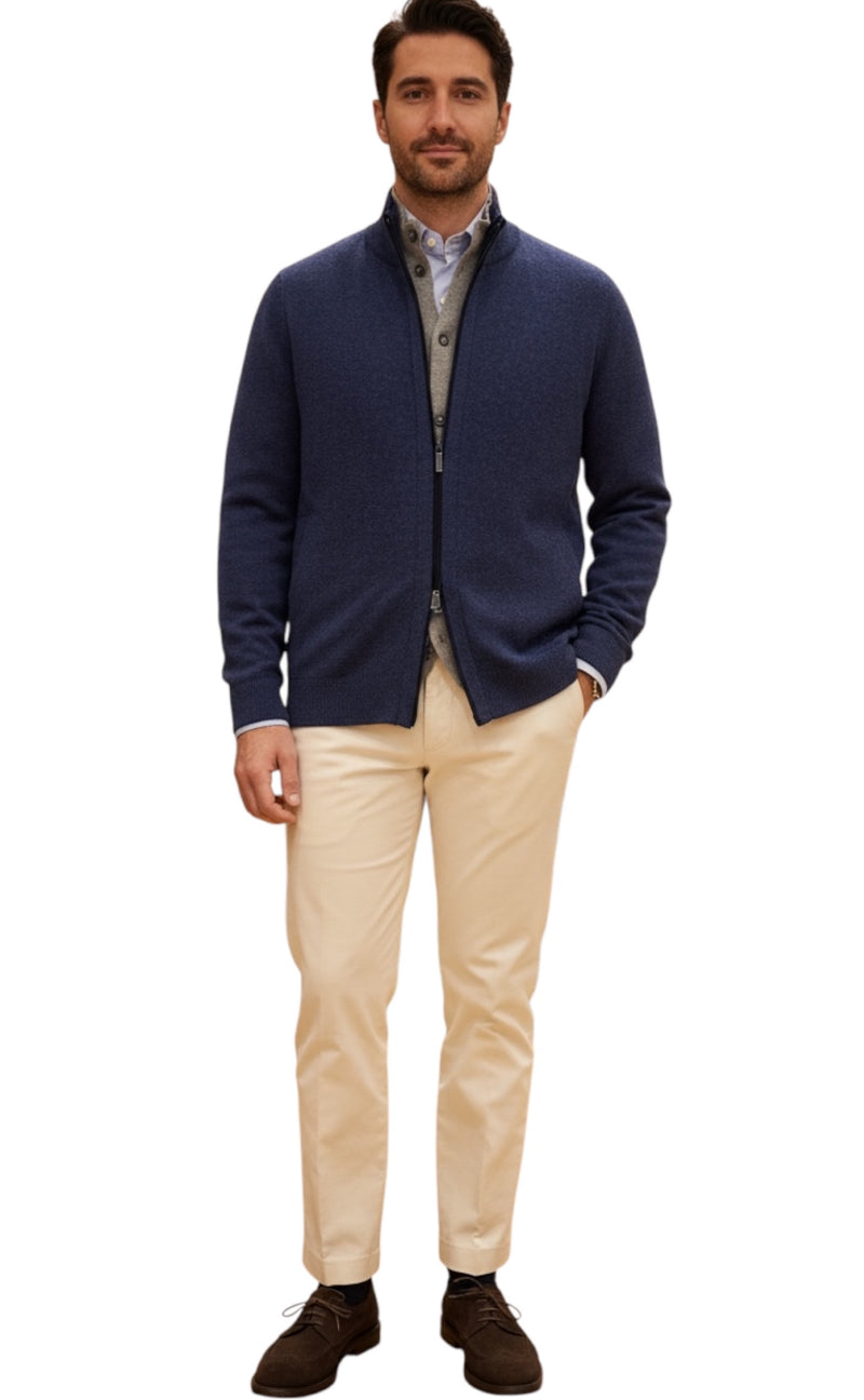 MARK MIDOR CARDIGAN FULL ZIP MICROPUNTINATO LANA MERINO DENIM