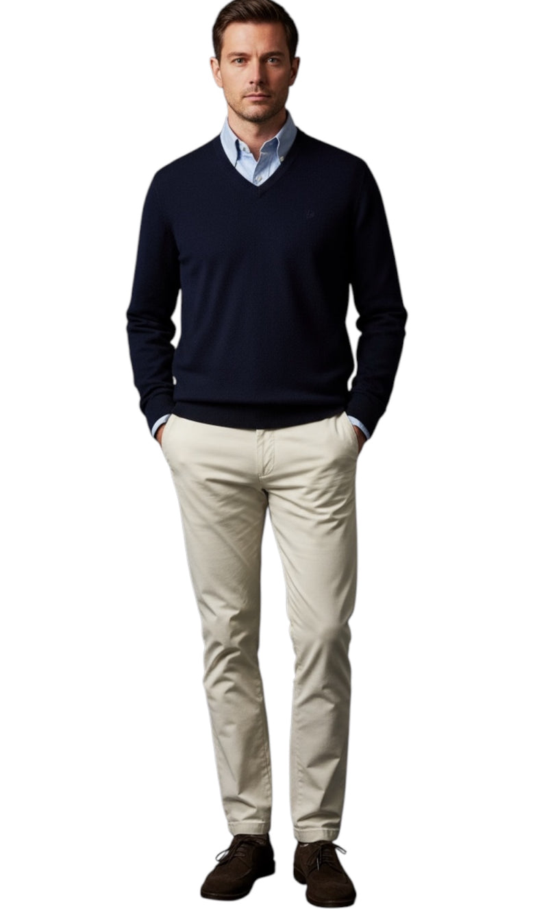 MARK MIDOR MAGLIA SCOLLO A V IN LANA MERINO E CASHMERE BLU NAVY