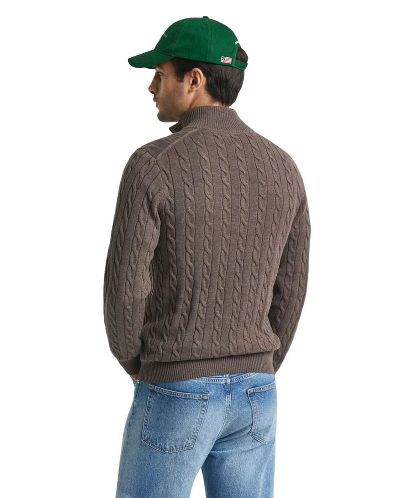 GANT MAGLIA CON ZIP CORTA IN COTONE A TRECCE SEAWOOD MELANGE