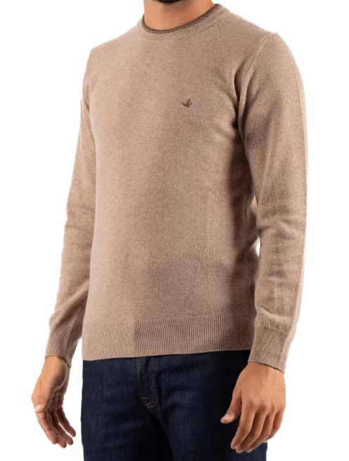 BROOKSFIELD MAGLIA GIROCOLLO RIGHINO A CONTRASTO IN LANA COLORE CAMOSCIO