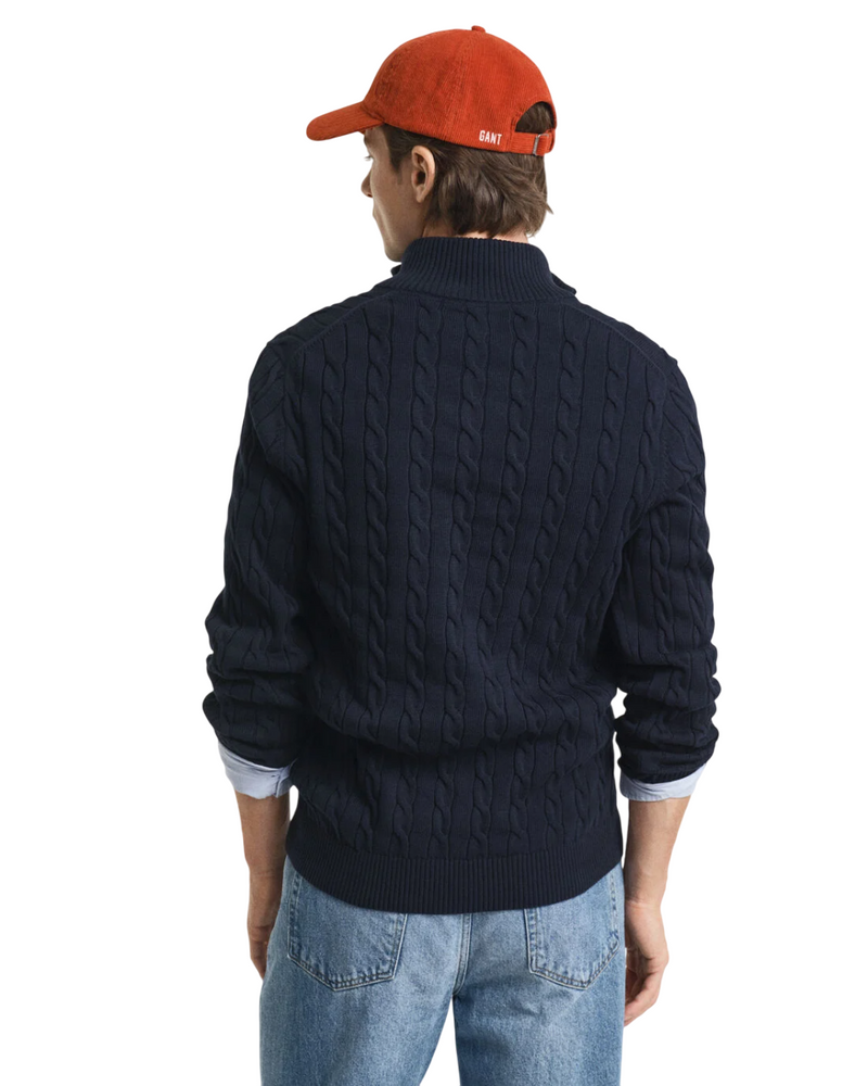 GANT MAGLIA CON ZIP CORTA IN COTONE A TRECCE EVENING BLUE