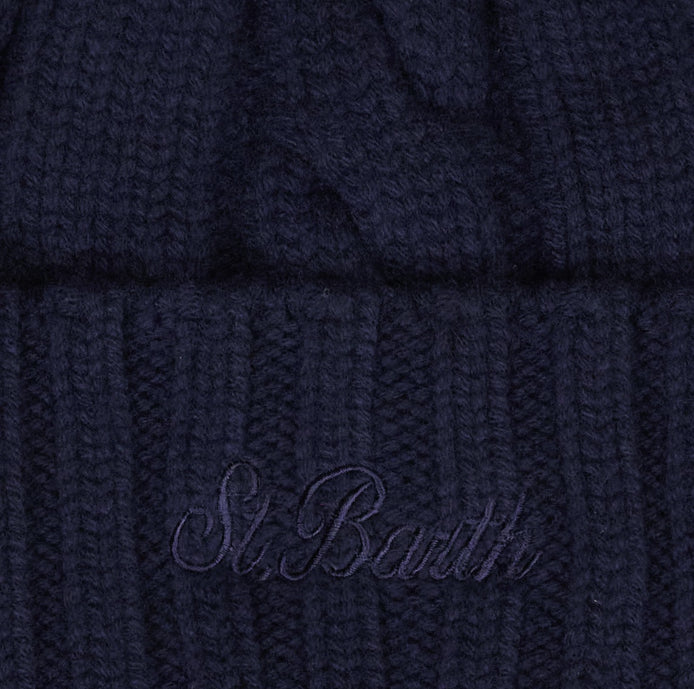 MC2 SAINT BARTH BERRETTO BEANIE WENGERN LAVORATO CON LOGO BLU