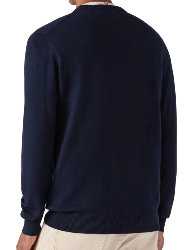 BROOKSFIELD MAGLIA GIROCOLLO RIGHINO A CONTRASTO IN LANA BLU SCURO