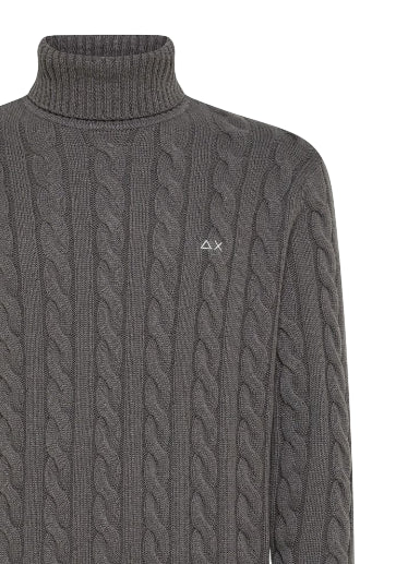 SUN68 MAGLIA UOMO DOLCEVITA IN MISTO LANA A TRECCE GRIGIO SCURO