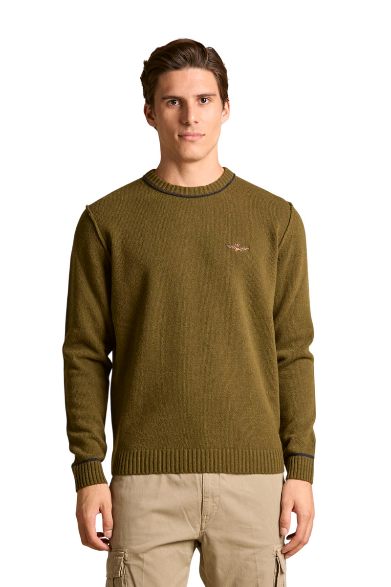 AERONAUTICA MILITARE MAGLIA GIROCOLLO IN LANA TINTO FILO OLIVE DARK