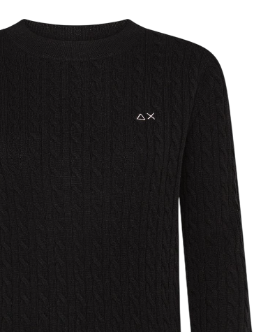 SUN68 DONNA MAGLIONE IN LANA E CASHMERE A TRECCE NERO