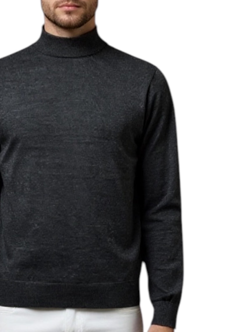 MARK MIDOR MAGLIA A LUPETTO IN LANA MERINO EXTRAFINE GRIGIO ANTRACITE
