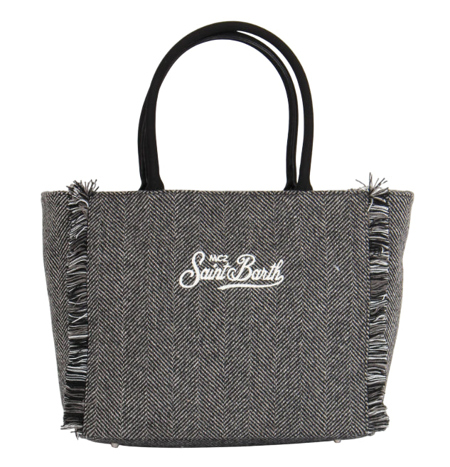 MC2 SAINT BARTH BORSA A SPALLA VANITY WOOL HERRINGBONE SPINATA NERO BIANCO