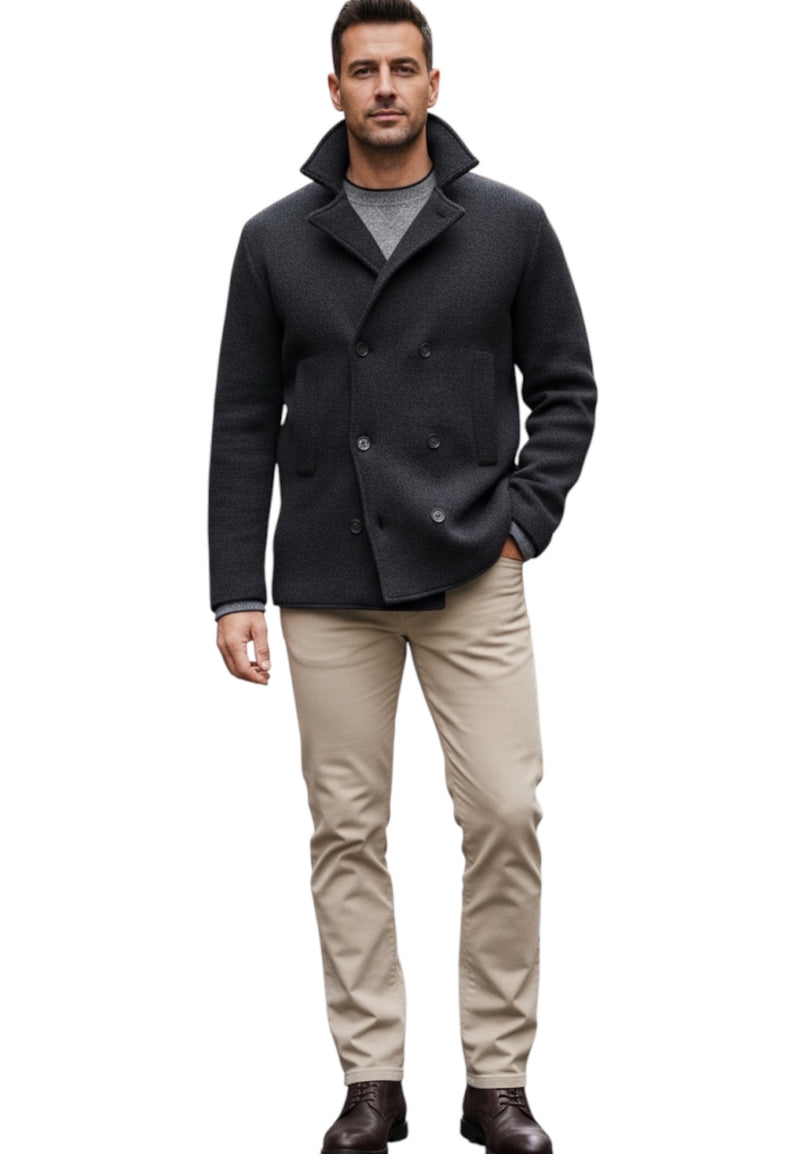 MARK MIDOR GIACCA MAGLIA DOPPIO PETTO IN LANA MERINO ANTRACITE