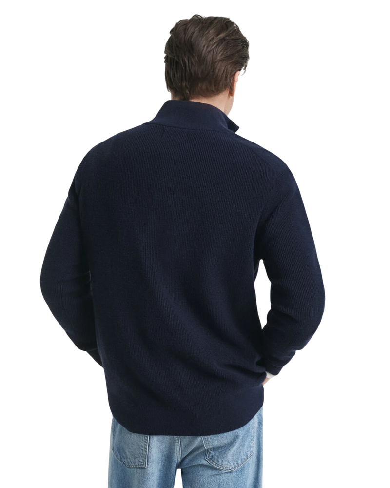 GANT MAGLIA CON ZIP CORTA IN COTONE E LANA MERINO A COSTE EVENING BLUE