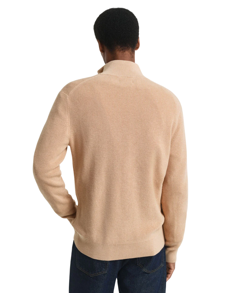 GANT MAGLIA CON ZIP CORTA IN COTONE E LANA MERINO A COSTE KHAKI MELANGE