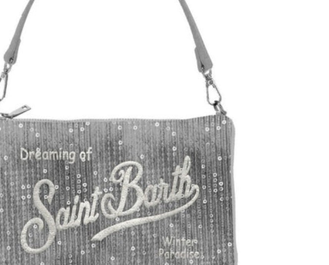 MC2 SAINT BARTH POCHETTE ALINE VELVET PAILLETTES GRIGIO