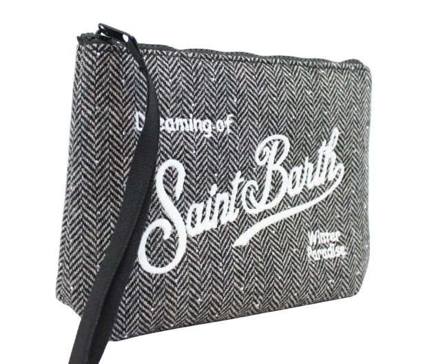 MC2 SAINT BARTH POCHETTE ALINE WOOL HERRINGBONE BIANCO E NERO