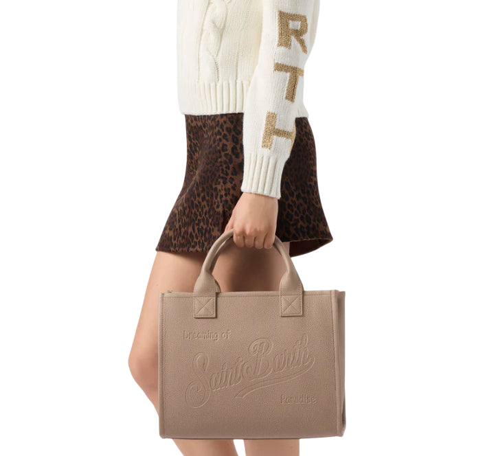 MC2 SAINT BARTH BORSA A SPALLA VANITY BAG LARGE IN PELLE MARTELLATA NOCCIOLA