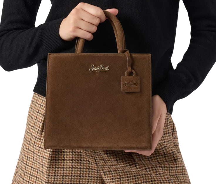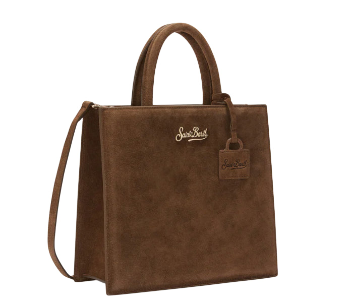MC2 SAINT BARTH BORSA BORSA A MANO SHOP BAG MIDI IN PELLE SCAMOSCIATA MARRONE