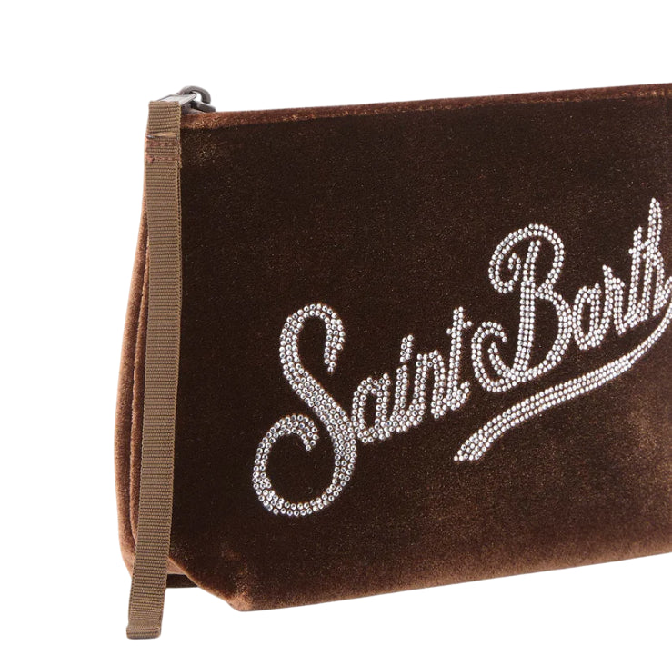 MC2 SAINT BARTH POCHETTE ALINE VELVET IN VELLUTO CAMMELLO E STRASS