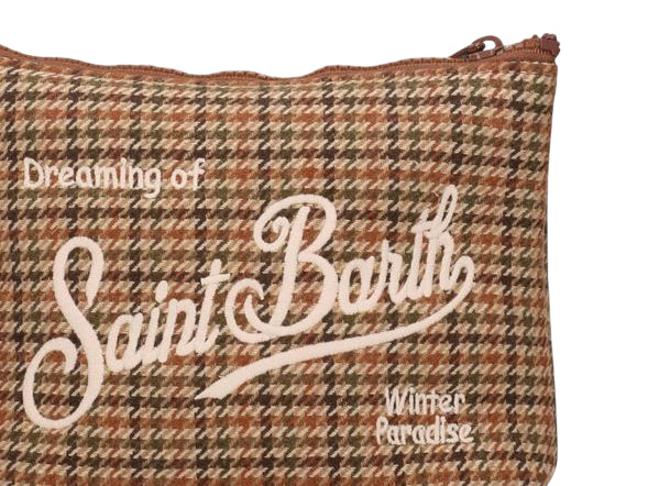 Pochette MC2 Saint Barth in tessuto motivo pied de poule beige marrone verde