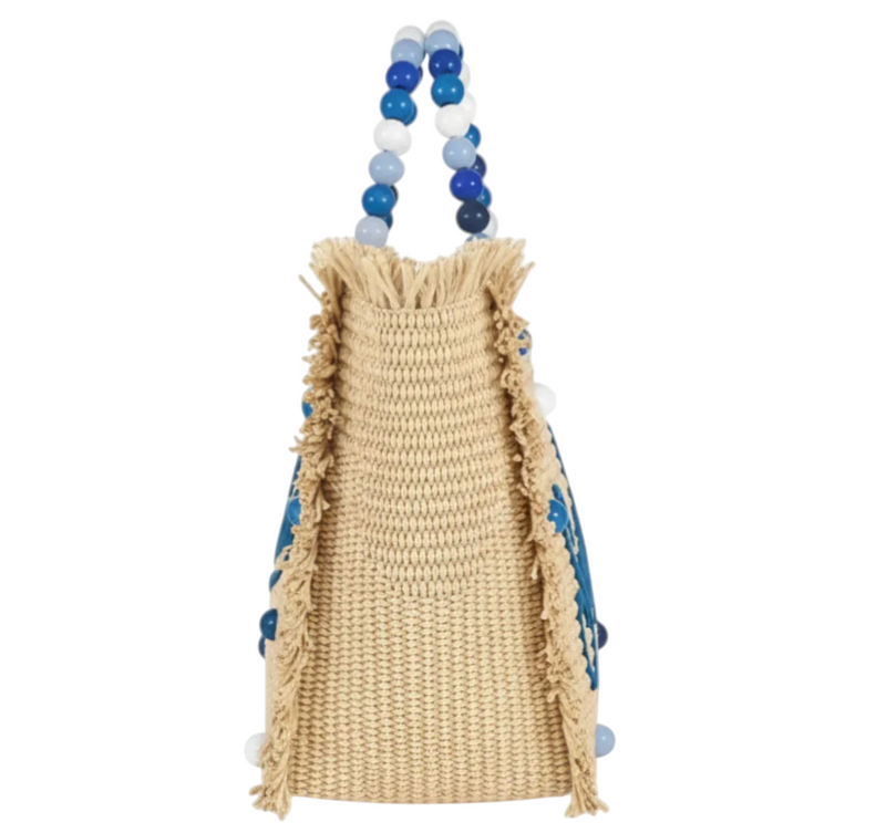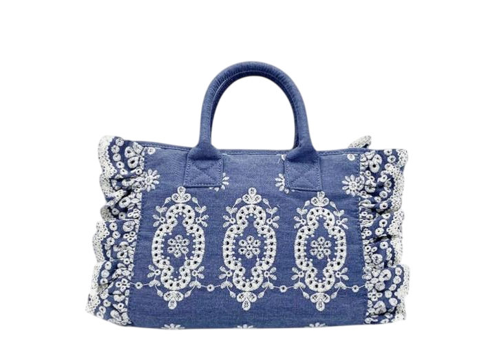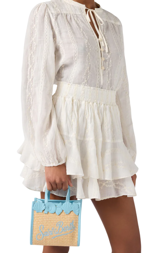 MC2 SAINT BARTH BORSA COLETTE VOLANT SANGALLO FLOWER DENIM BIANCO
