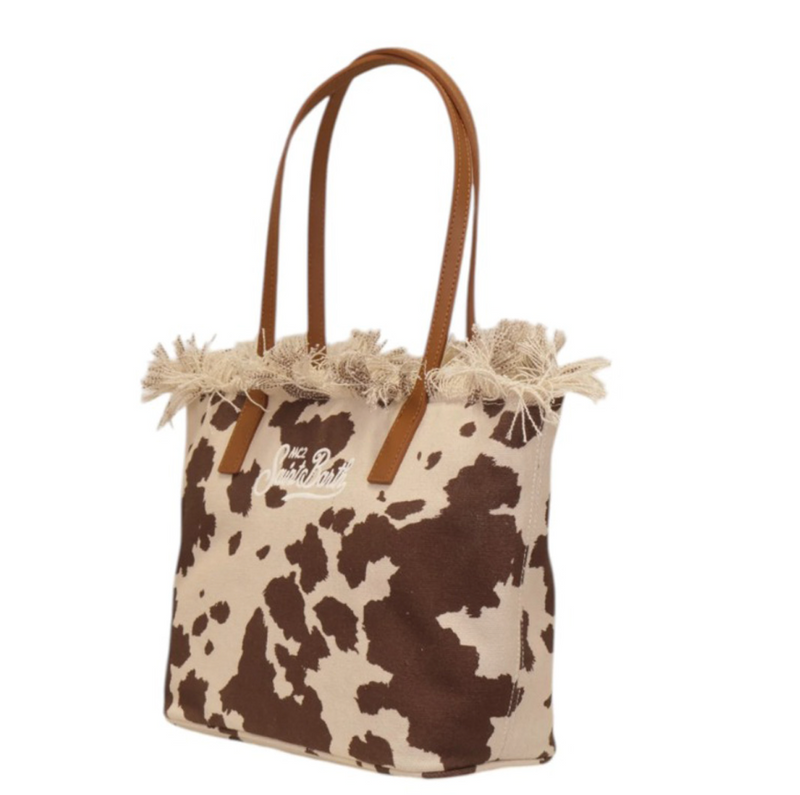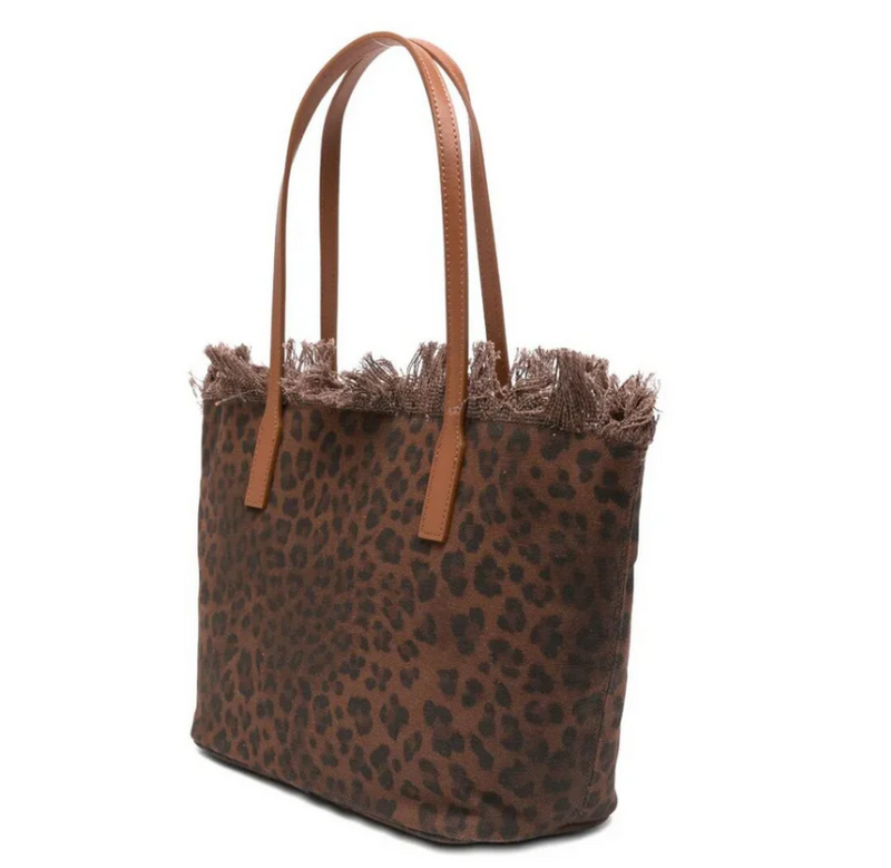 MC2 SAINT BARTH BORSA CITY BAG MID FRINGE 00588L CANVAS DARK LEOPARD