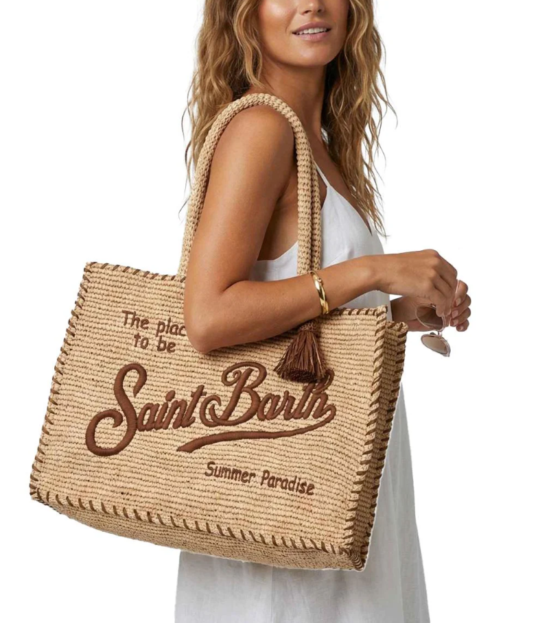 MC2 SAINT BARTH BORSA VANITY RAFFIA LOGO NAPPA TASCA COLORE CORDA