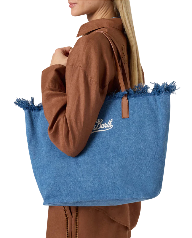 MC2 SAINT BARTH BORSA CITY REGULAR IN TESSUTO DENIM CON FRANGE