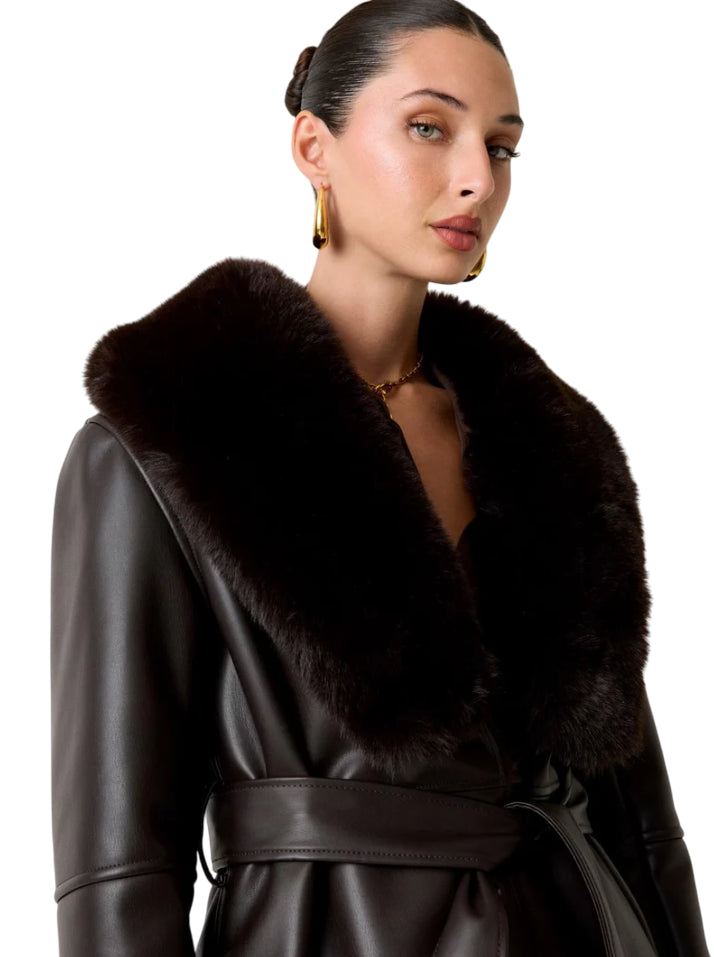 MARCIANO BY GUESS CAPPOTTO DONNA ZOEY FAUX LEATHER CHOCOLATE BROWNIE