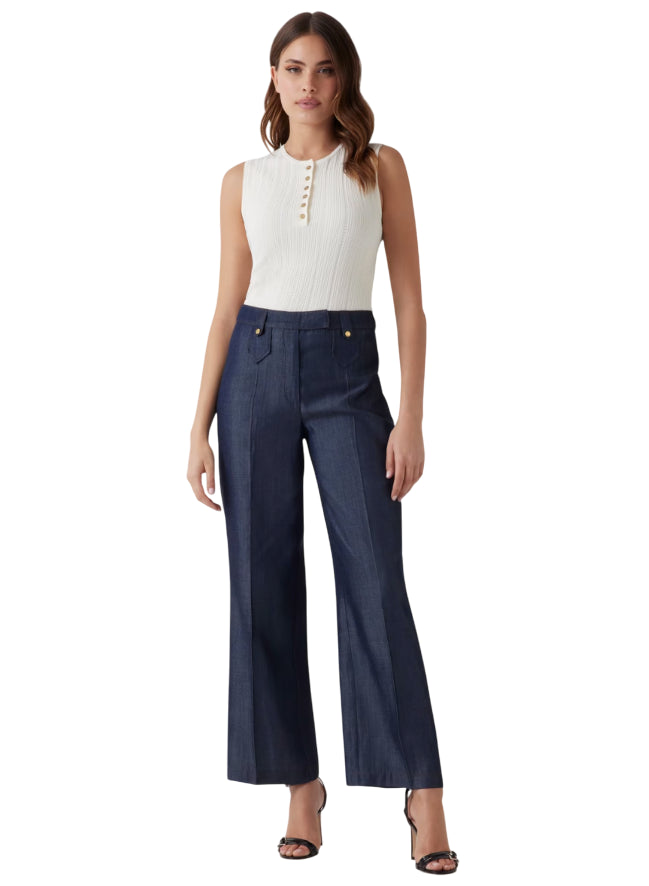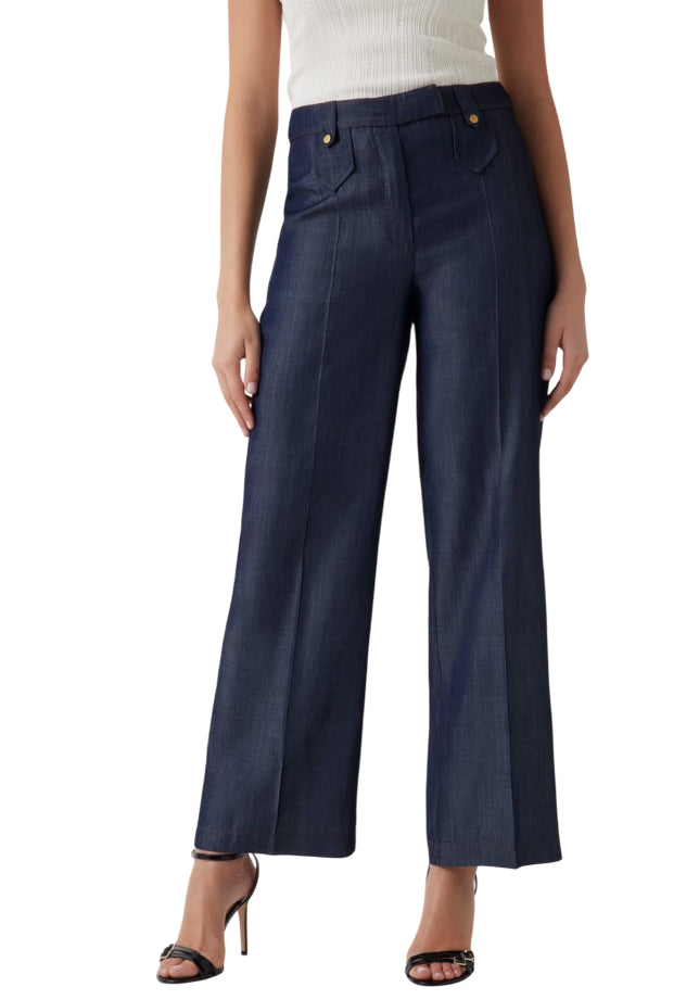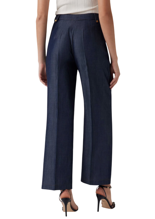 Pantalone elegante in denim lyocell con lavaggio scuro.