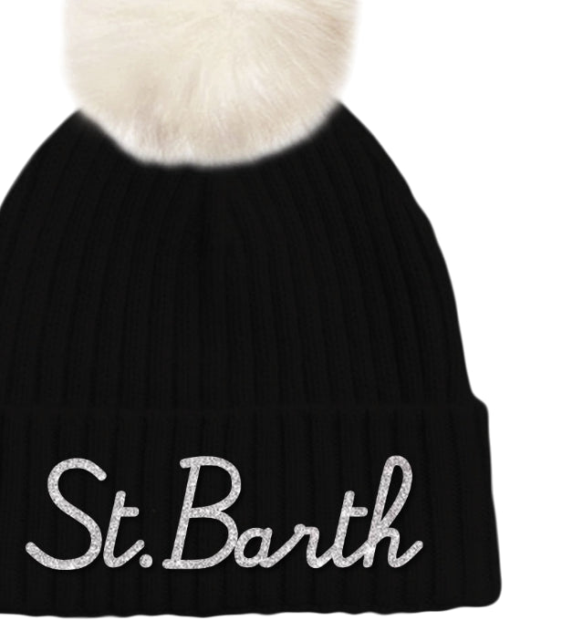 MC2 SAINT BARTH BERRETTO DONNA IN LANA CON POMPON E SCRITTA ST BARTH NERO 00 EMB