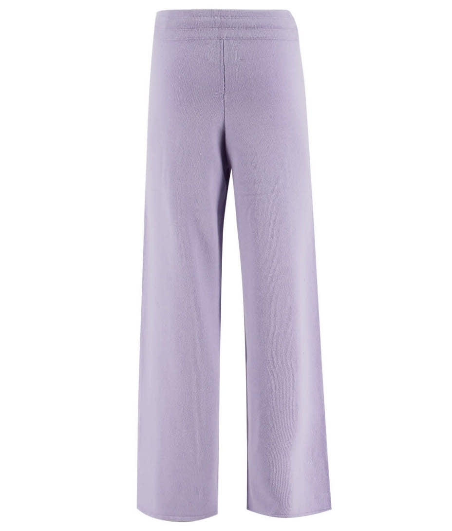 Morbidi pantaloni palazzo in maglia per donne della nuova collezione a/i 23-24 made in Saint Barth. Realizzati in una lussuosa miscela di cashmere, lana, viscosa e poliammide, questi pantaloni della tuta offrono una vestibilità regolare con elastico in vita. Non hanno tasche, ma il loro comfort ed eleganza compensano ampiamente. Colore: LILLA. Venduta separatamente e in abbinata anche la felpa dello stesso colore e tessuto