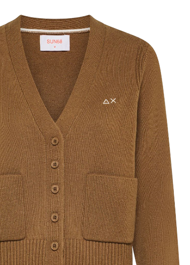 SUN68 CARDIGAN IN FILATO DI LANA E CASHMERE MARRONE DESERTO