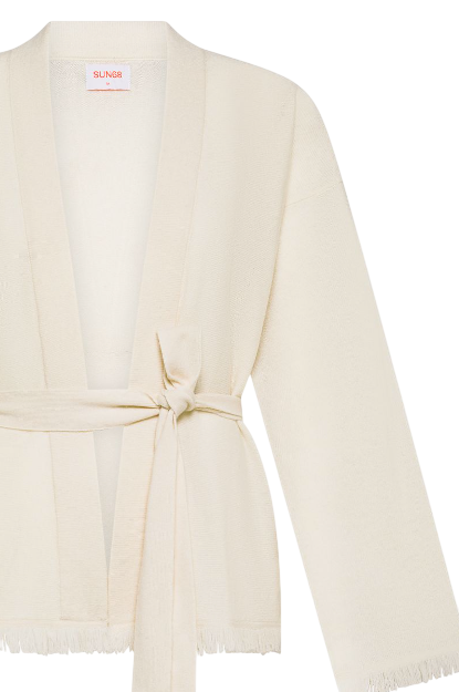 SUN68 CARDIGAN IN LANA E CASHMERE CON FRANGE BIANCO PANNA