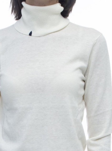 Una pratica e confortevole maglia modello dolcevita realizzata in un perfetto mix di lana 50% e cotone 50%.